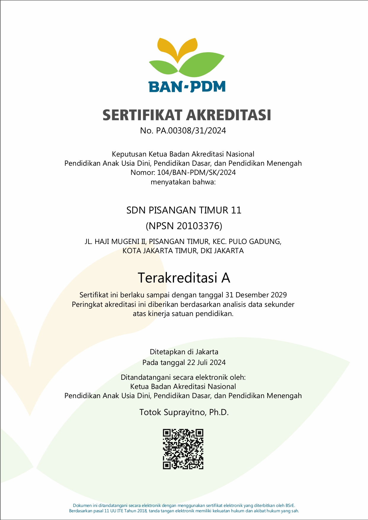 • Kami terus berusaha meningkatkan kualitas layanan pendidikan di SDN Pisangan Timur 11 || Untuk pengaduan tindak kekerasan hubungi 081285621970!