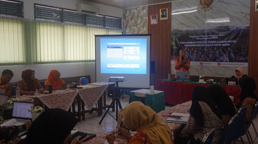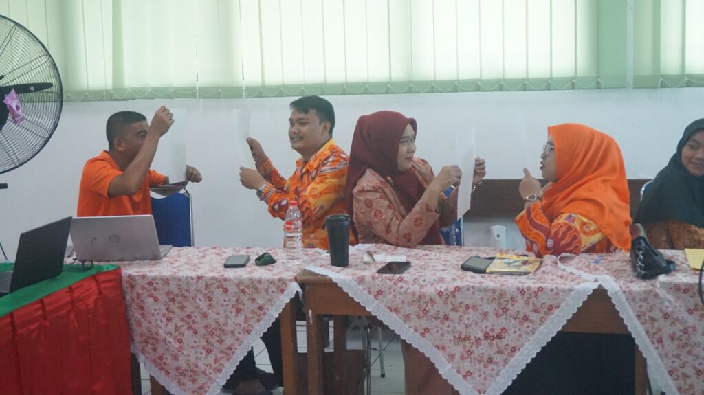 Para guru juga mengikuti sesi diskusi dan praktik langsung dalam merancang skenario pembelajaran yang menstimulasi nalar kritis murid. Suasana pelatihan berlangsung aktif dan interaktif, ditandai dengan antusiasme peserta dalam bertanya, berdiskusi, dan berbagi pengalaman.