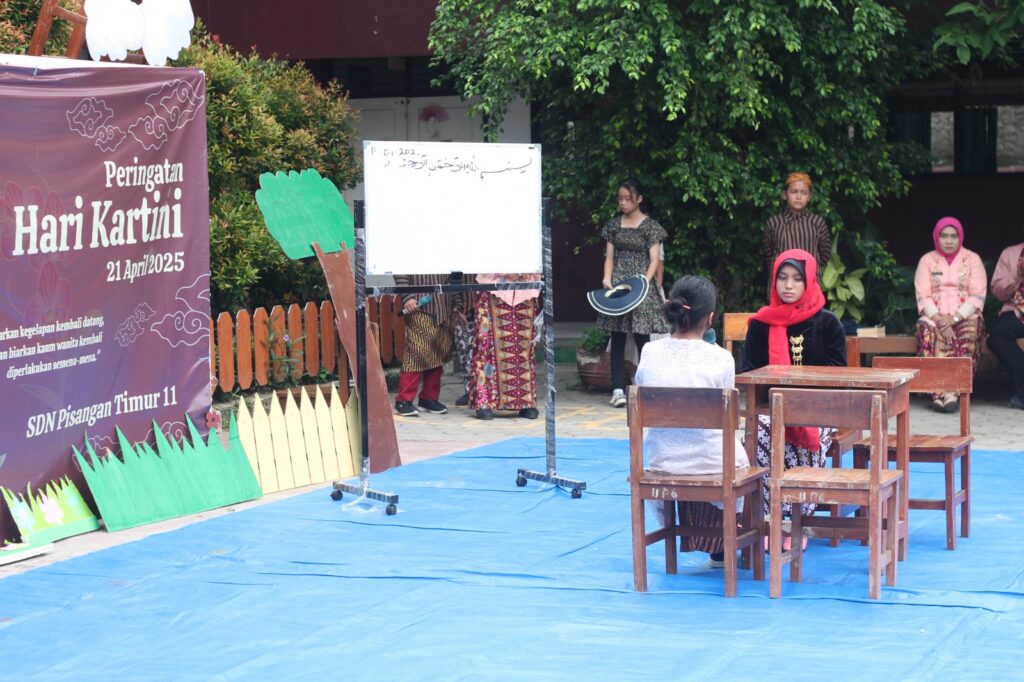 Acara dimulai pada pagi hari dengan upacara peringatan Hari Kartini yang berlangsung dengan khidmat di lapangan sekolah. Seusai upacara, kegiatan dilanjutkan dengan penampilan drama berjudul “Kartini”. Dalam drama ini, siswa-siswi SDN Pisangan Timur 11 dengan penuh semangat memerankan kisah perjuangan R.A. Kartini dalam memperjuangkan hak pendidikan bagi kaum perempuan. Penampilan mereka mendapatkan sambutan hangat dan tepuk tangan meriah dari seluruh peserta.