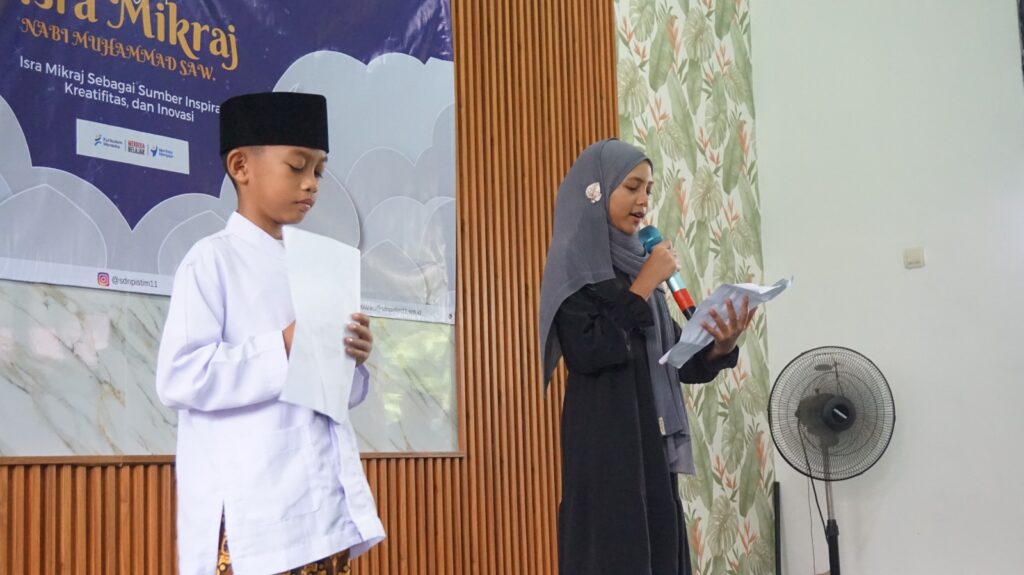 Kegiatan diawali dengan pembukaan oleh pembawa acara, diikuti dengan pembacaan ayat suci Al-Qur’an. Kepala sekolah SDN Pisangan Timur 11, Ibu Dhina Maylani Rusdha, M.Pd., memberikan sambutan yang menekankan pentingnya memahami makna Isra Mikraj sebagai bagian dari pembelajaran spiritual dan peningkatan keimanan bagi para siswa.