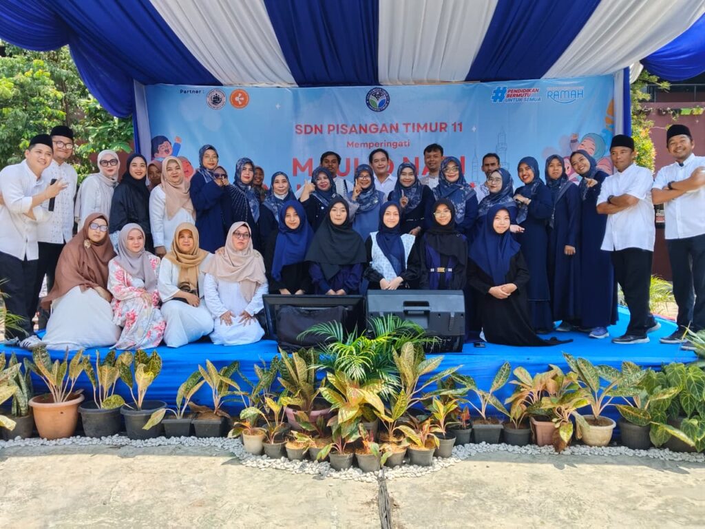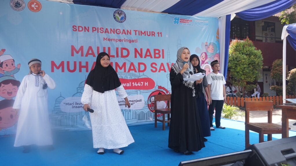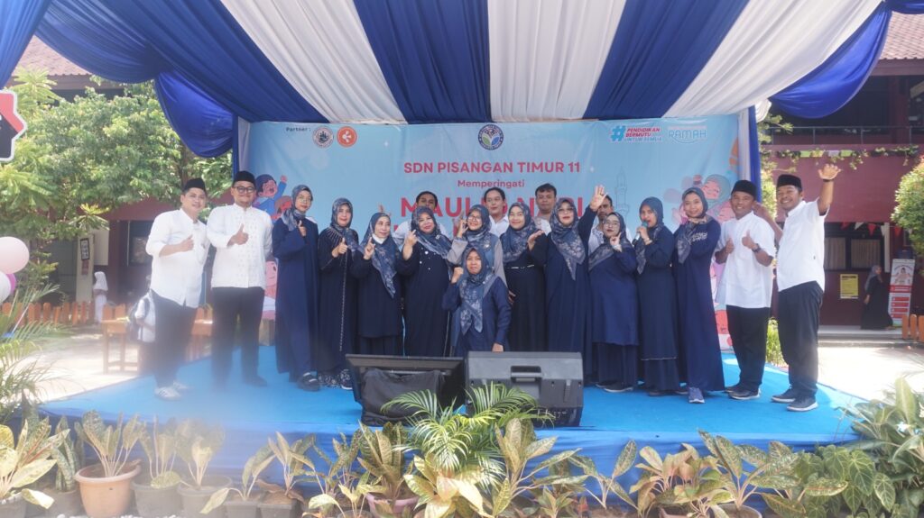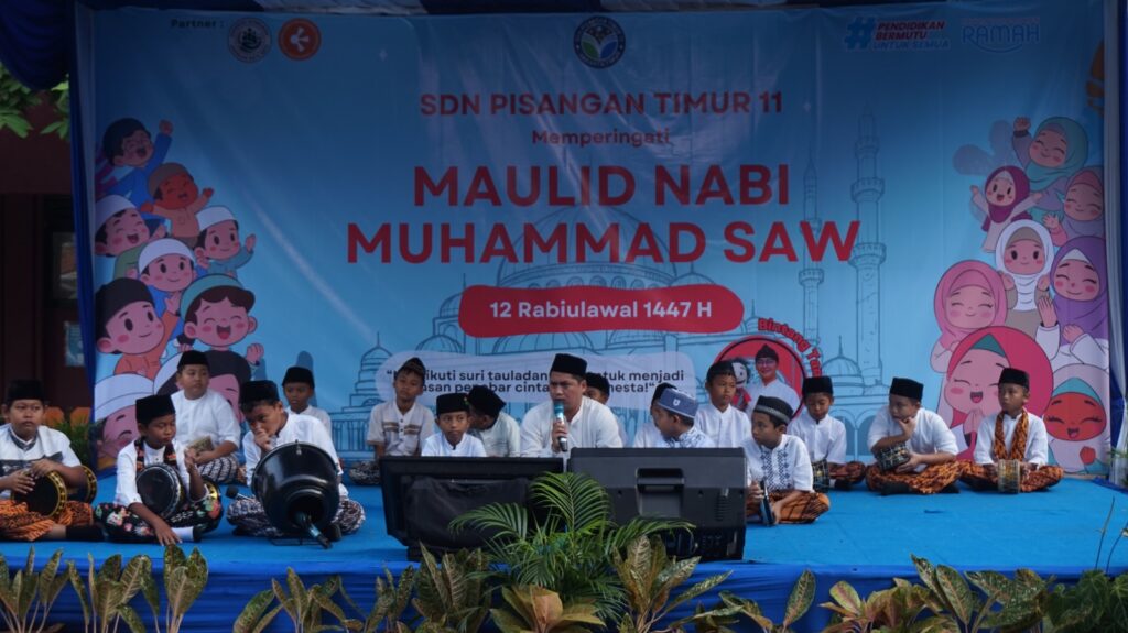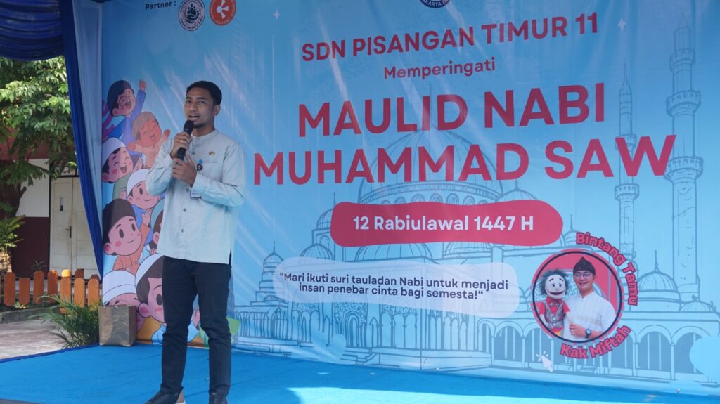 Jakarta, 26 September 2025 – SDN Pisangan Timur 11 menyelenggarakan peringatan Maulid Nabi Muhammad SAW pada hari Jumat, 26 September 2025 bertempat di lapangan sekolah. Acara berlangsung mulai pukul 06.30 hingga 11.00 WIB dan dihadiri oleh seluruh warga sekolah, para tamu undangan dari Kelurahan Pisangan Timur, serta perwakilan sponsor utama, Kemas Foundation.