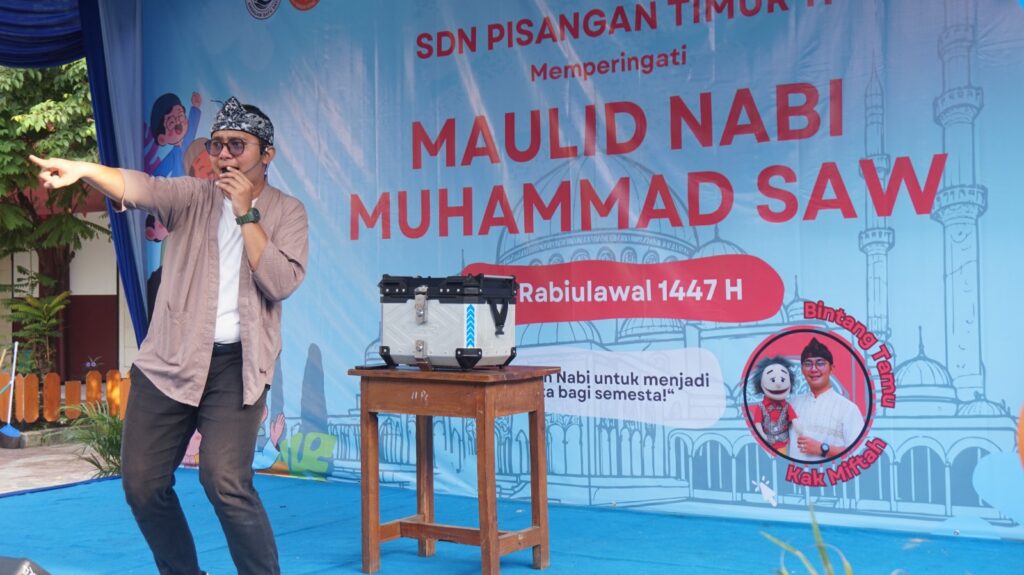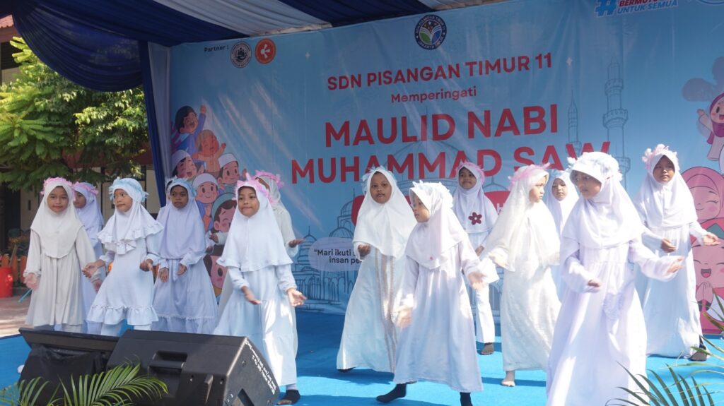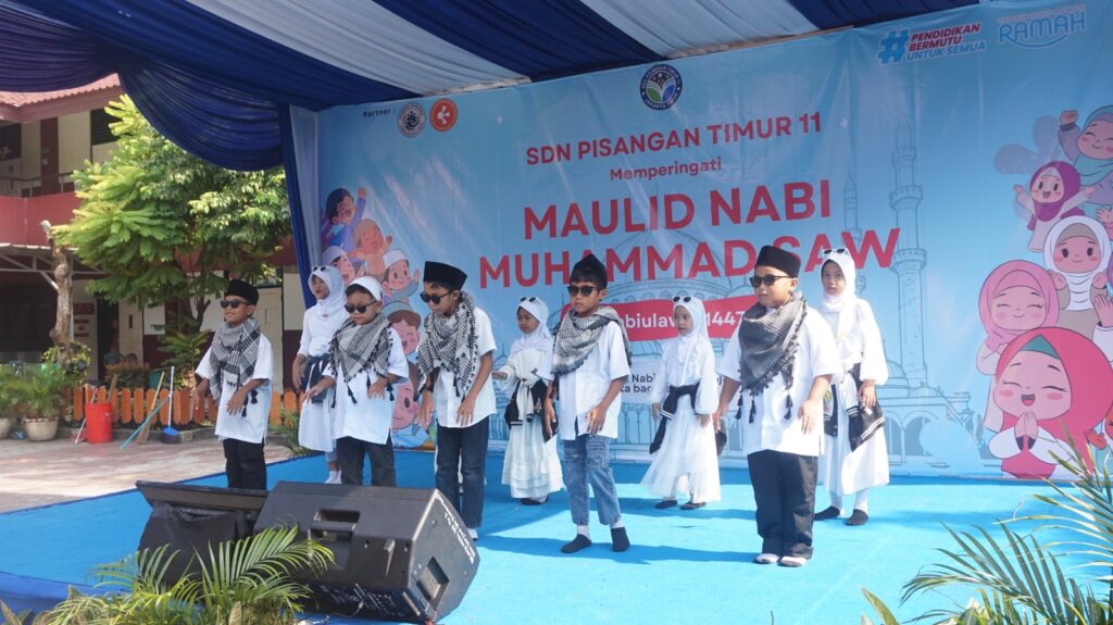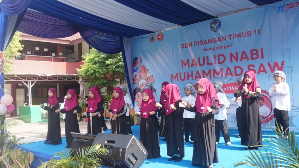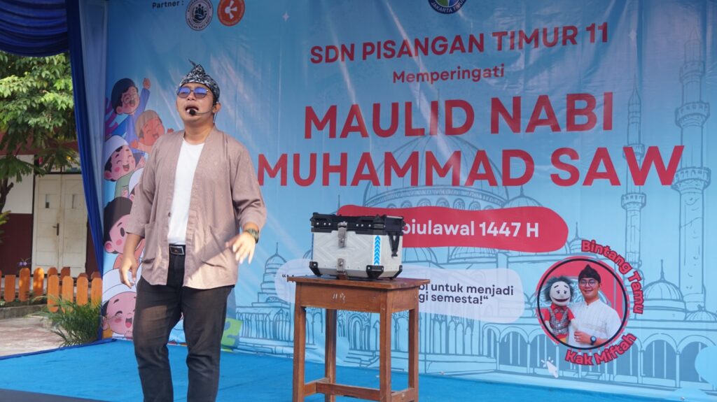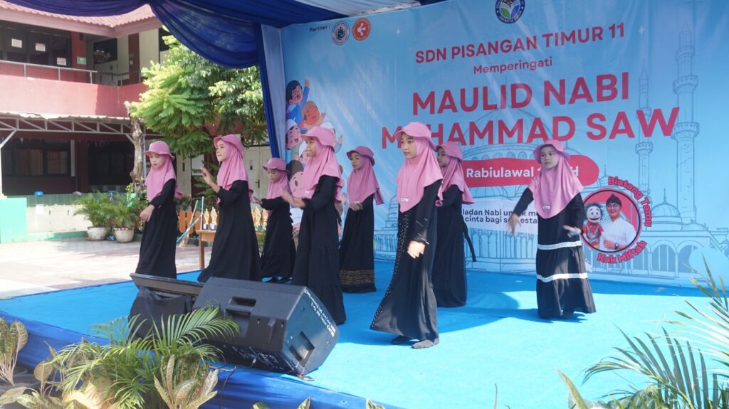 Jakarta, 26 September 2025 – SDN Pisangan Timur 11 menyelenggarakan peringatan Maulid Nabi Muhammad SAW pada hari Jumat, 26 September 2025 bertempat di lapangan sekolah. Acara berlangsung mulai pukul 06.30 hingga 11.00 WIB dan dihadiri oleh seluruh warga sekolah, para tamu undangan dari Kelurahan Pisangan Timur, serta perwakilan sponsor utama, Kemas Foundation.